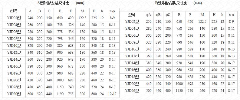 三、YJD型星型卸料器规格参数表如下: